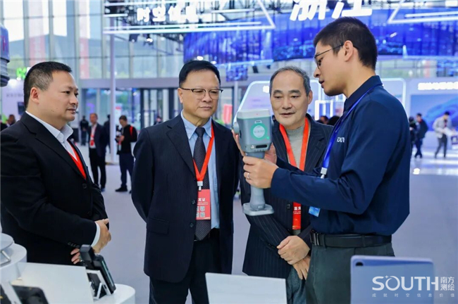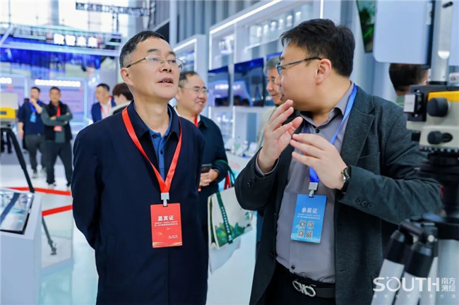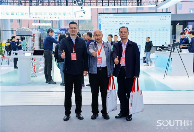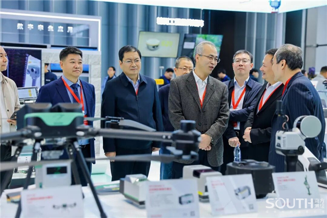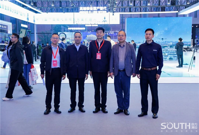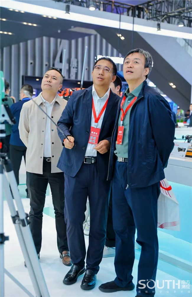 中国科学院、中国工程院院士,国家最高科学技术奖获得者李德仁(左三);中国工程院院士刘经南(左二)亲临南方展台